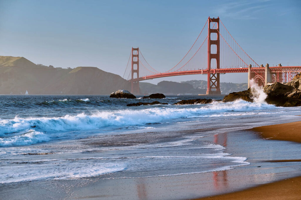 Nestled beneath the iconic silhouette of the Golden Gate Bridge, San Francisco’s Baker Beach unveils a rugged beauty that captivates both locals and visitors. The golden sands stretch along the rugged cliffs of Marin County, providing a serene escape from the bustling city life. With the iconic bridge as a backdrop, the beach offers prime sunset views, making it a favorite spot for photographers and romantics alike. Despite its proximity to downtown San Francisco, Baker Beach maintains a tranquil atmosphere, inviting beachgoers to unwind at this Northern California gem.